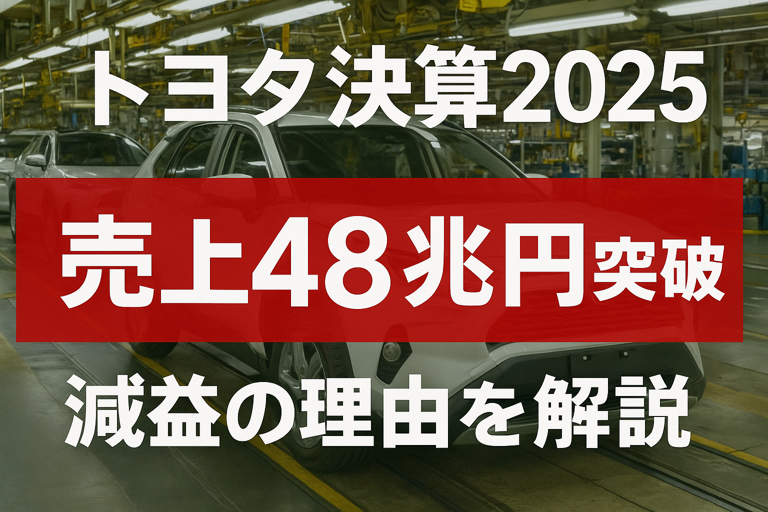トヨタ自動車の2025年度決算を徹底分析。売上48兆円超、営業利益減少の要因、為替や関税の影響、そして今後のEV戦略・成長のカギまでわかりやすく解説します。